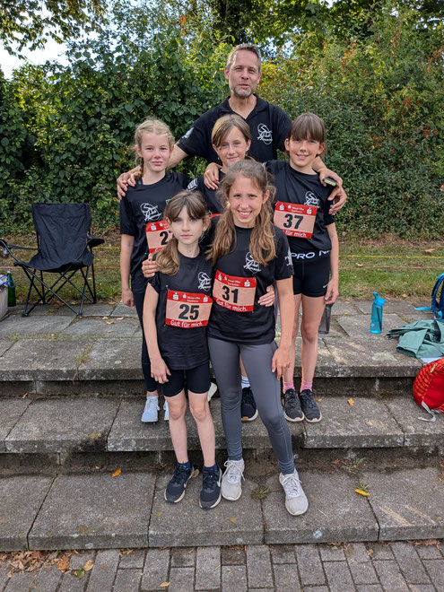 u.v.l.n.r. Amelie Förster, Jette Hoop, m.v.l.n.r. Emma Hoffmann, Ronja Vetter, Anni Schlichting, hinten Trainer Timo Fingas